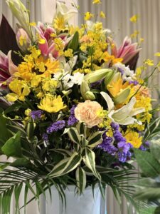 故人を偲ぶ場に季節感と温かみが加わるので、私たちも供花に取り入れています。