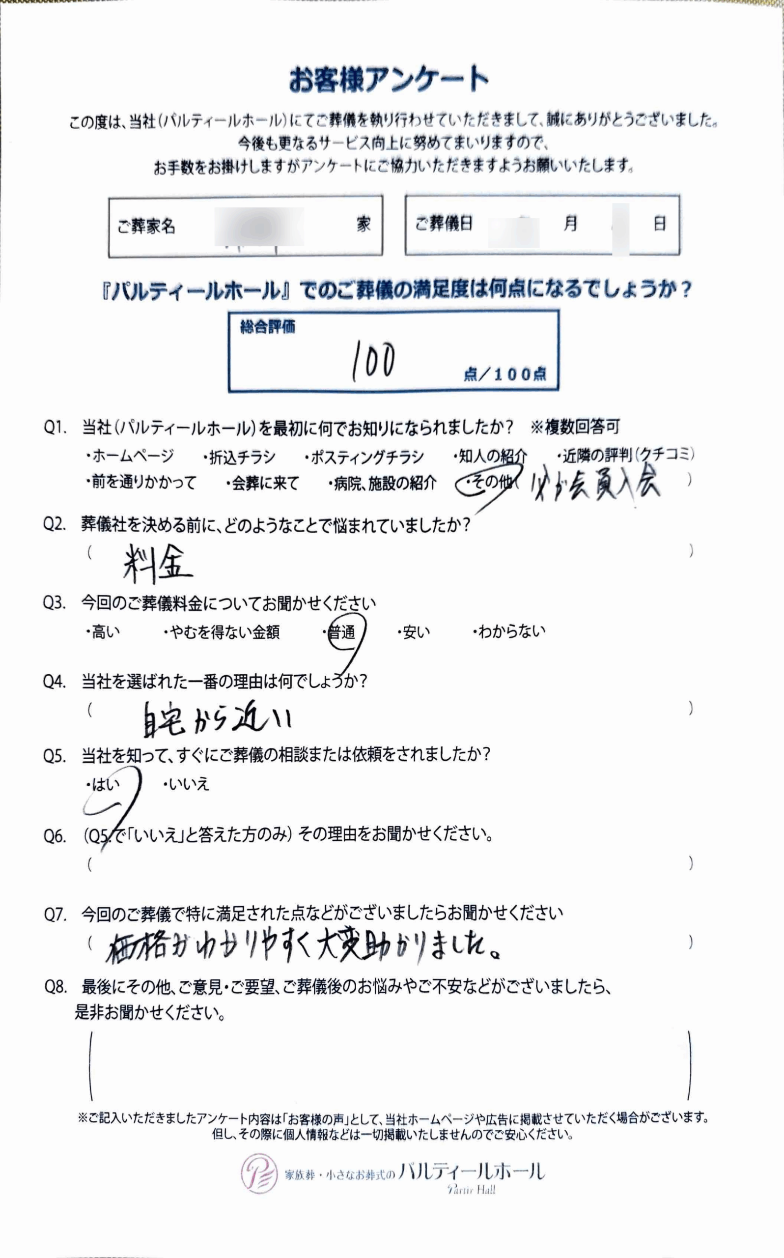 彦根市高宮町U様 選んだ理由自宅から近いから。彦根市 家族葬 小規模葬儀